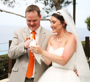 The doves will be in a decorative cage and the experienced person handling them will be appropriately dressed for your occasion.